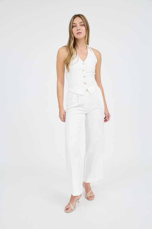 HIGH WAIST FRONT PLEAT WIDE LEG DRESS PANTS