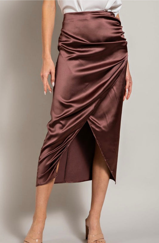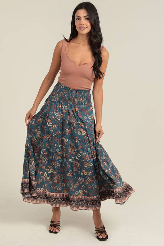 SMOCKED WAISTBAND A LINE MAXI SKIRT WITH SIDE SLI