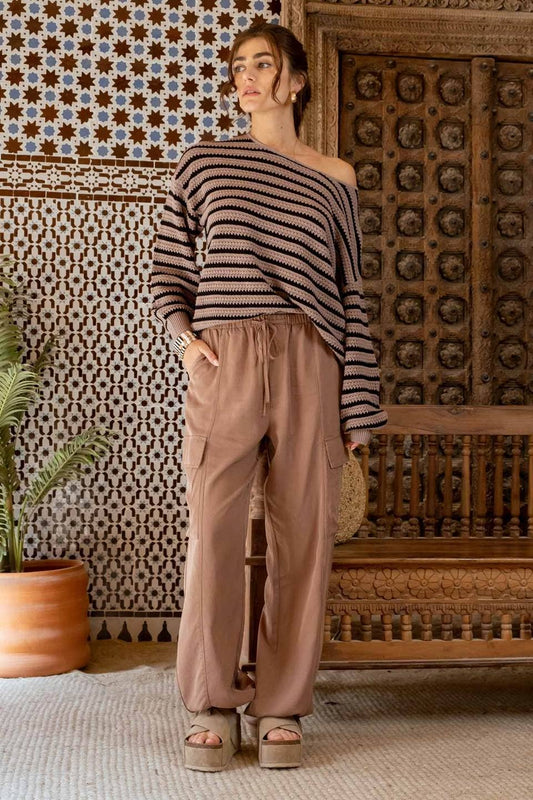 HIGH WAIST DRAWSTRING CARGO PANTS