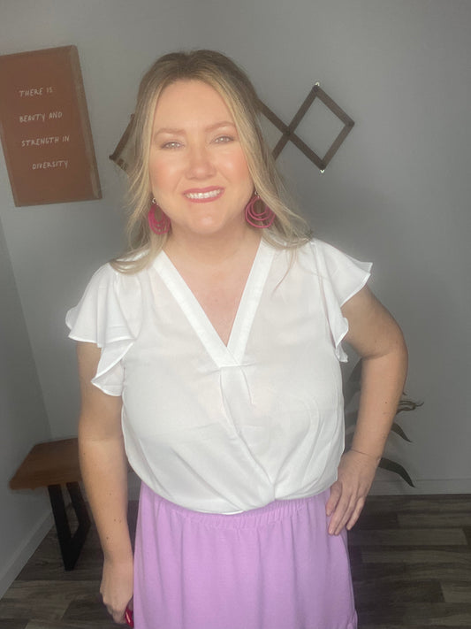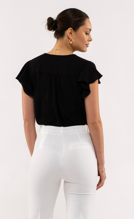 SHORT BUTTERFLY SLEEVE WOVEN TOP