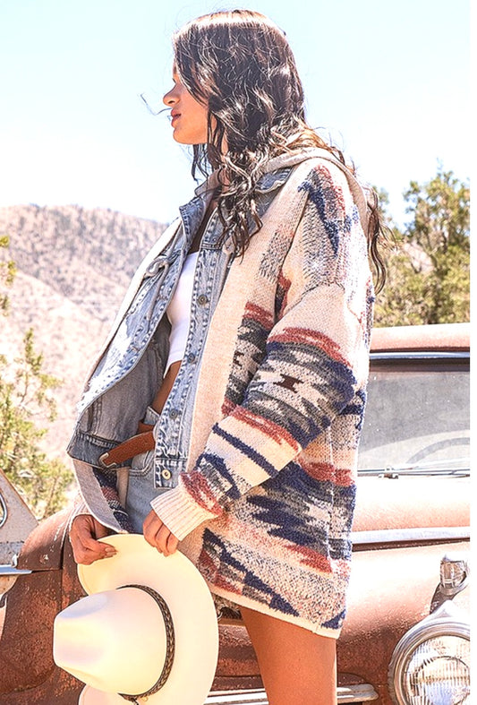AZTEC PRINTED JACQUARD LONG CARDIGAN