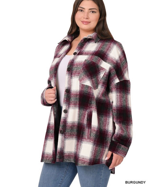 PLUS OVERSIZED YARN DYED PLAID LONGLINE SHACKET