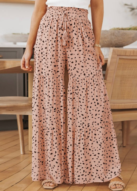 Ruffle Wide Leg Dalmatian Palazzo Pants