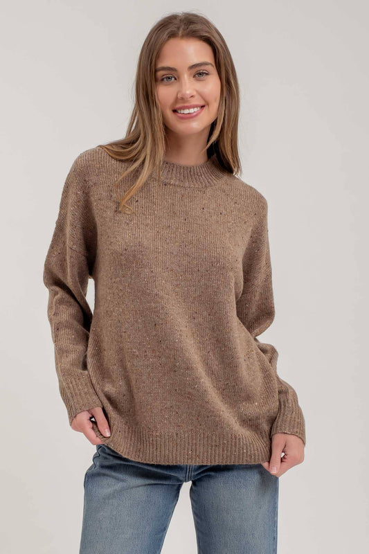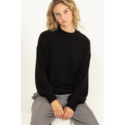 KNIT MOCK NECK LONG SLEEVE SWEATER