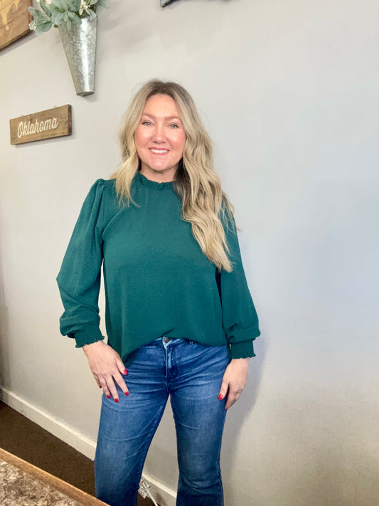 Ruffled Neck Top and Smocked Sleeves (Multiple Colors)