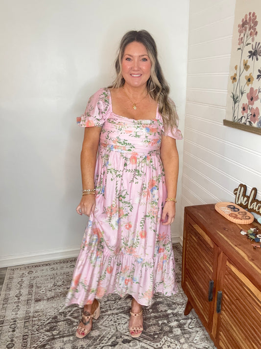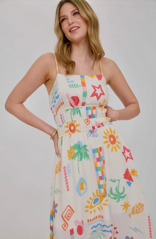 SUMMER PRINT SPAGHETTI STRAP MIDI SUNDRESS