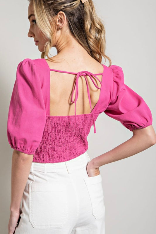 Sweetheart Hot Pink Bubble Sleeve Top
