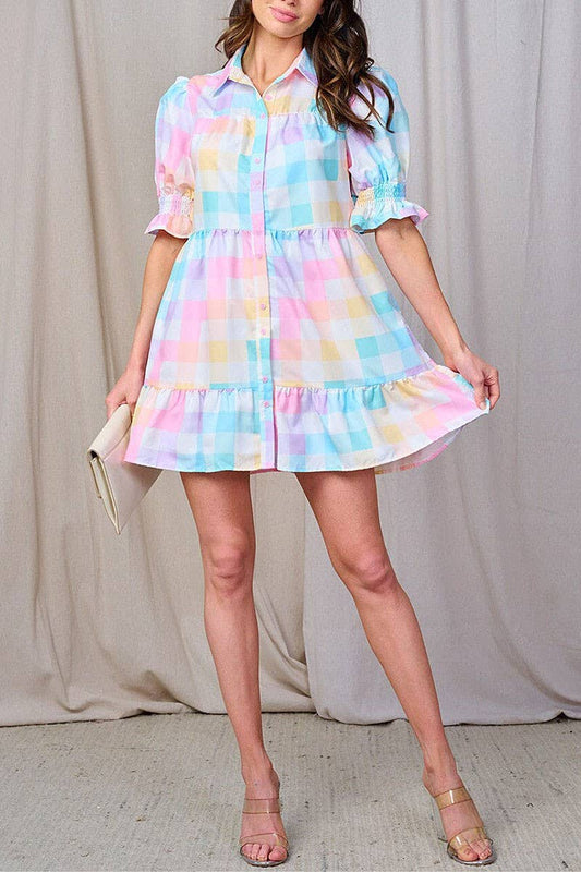 Checker pastel bubble sleeve Dress