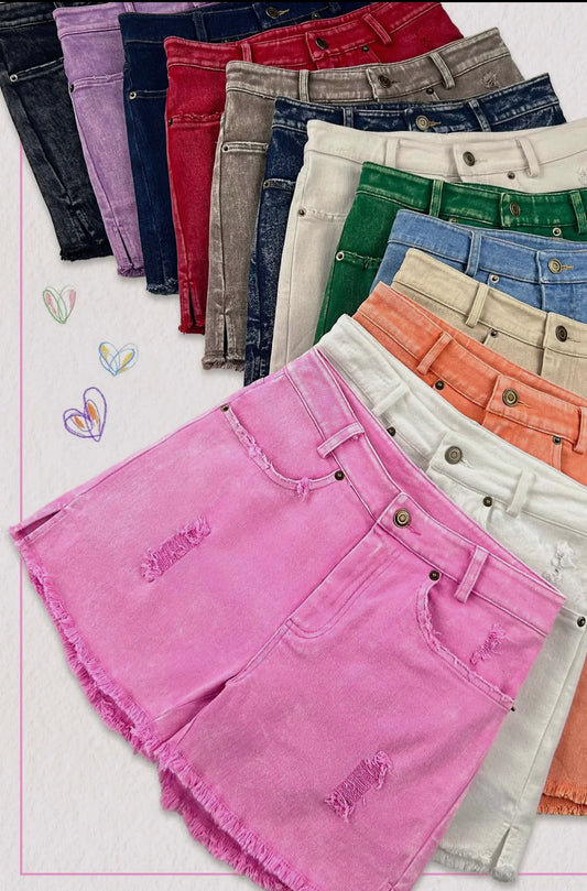 Acid washed frayed shorts