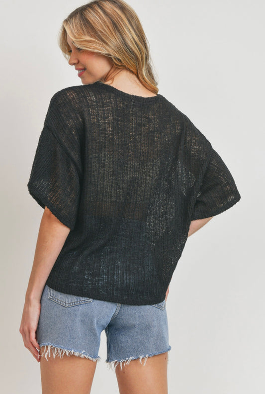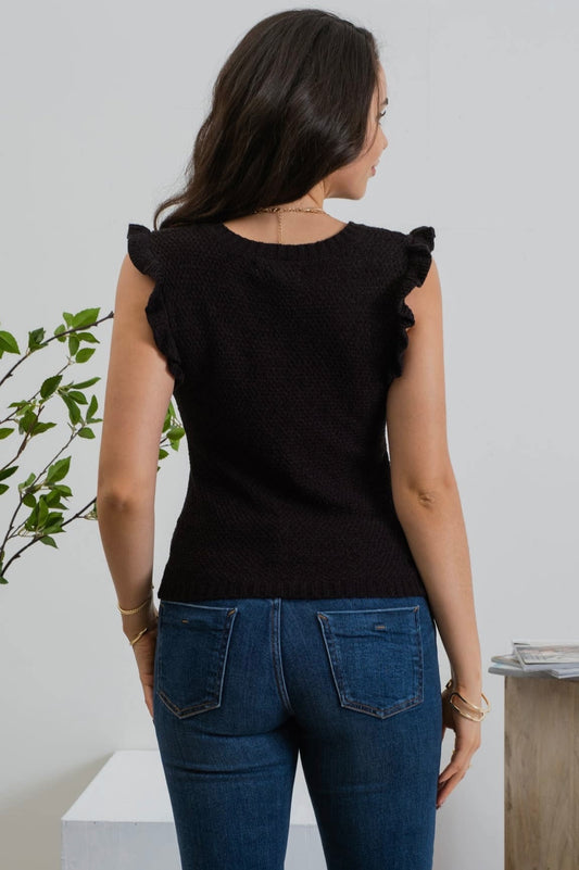 Mesh Ruffle Sleeve Ribbed Knit Too