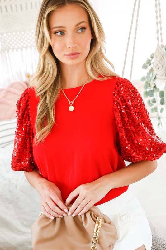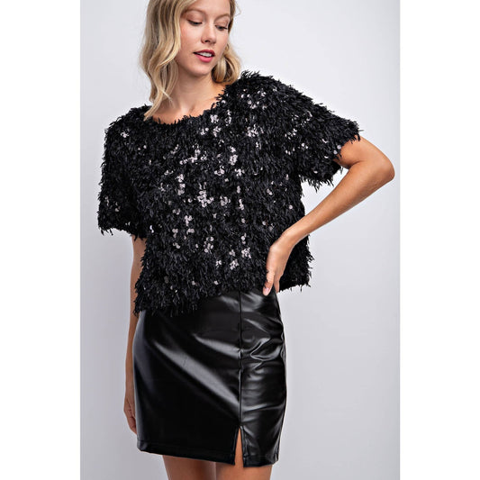 SEQUIN FEATHER BLOUSE TOP-BLACK