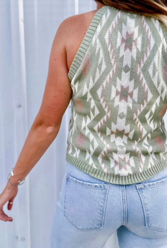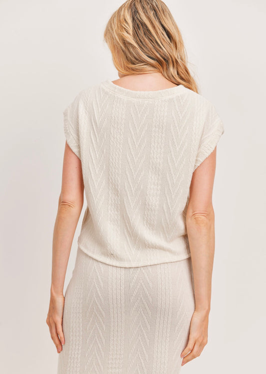 Cable Knit Mock Neck Cap Sleeve Sweater
