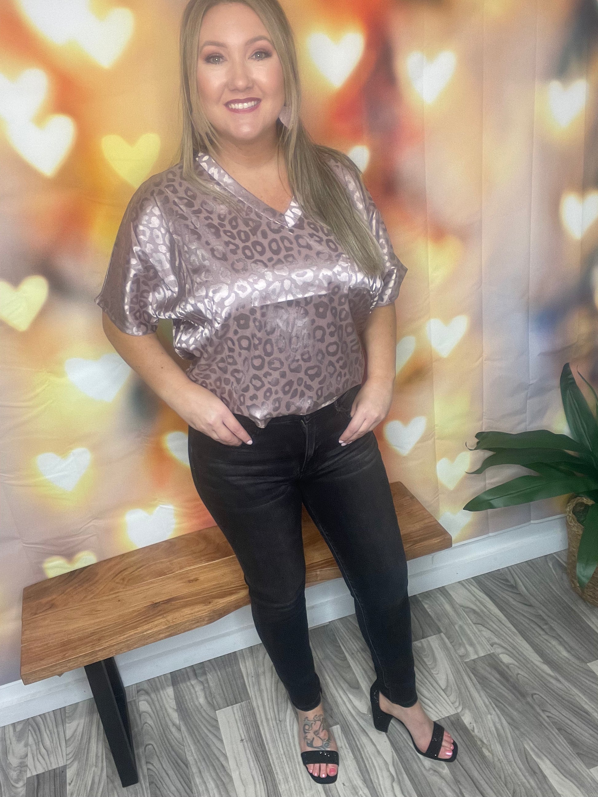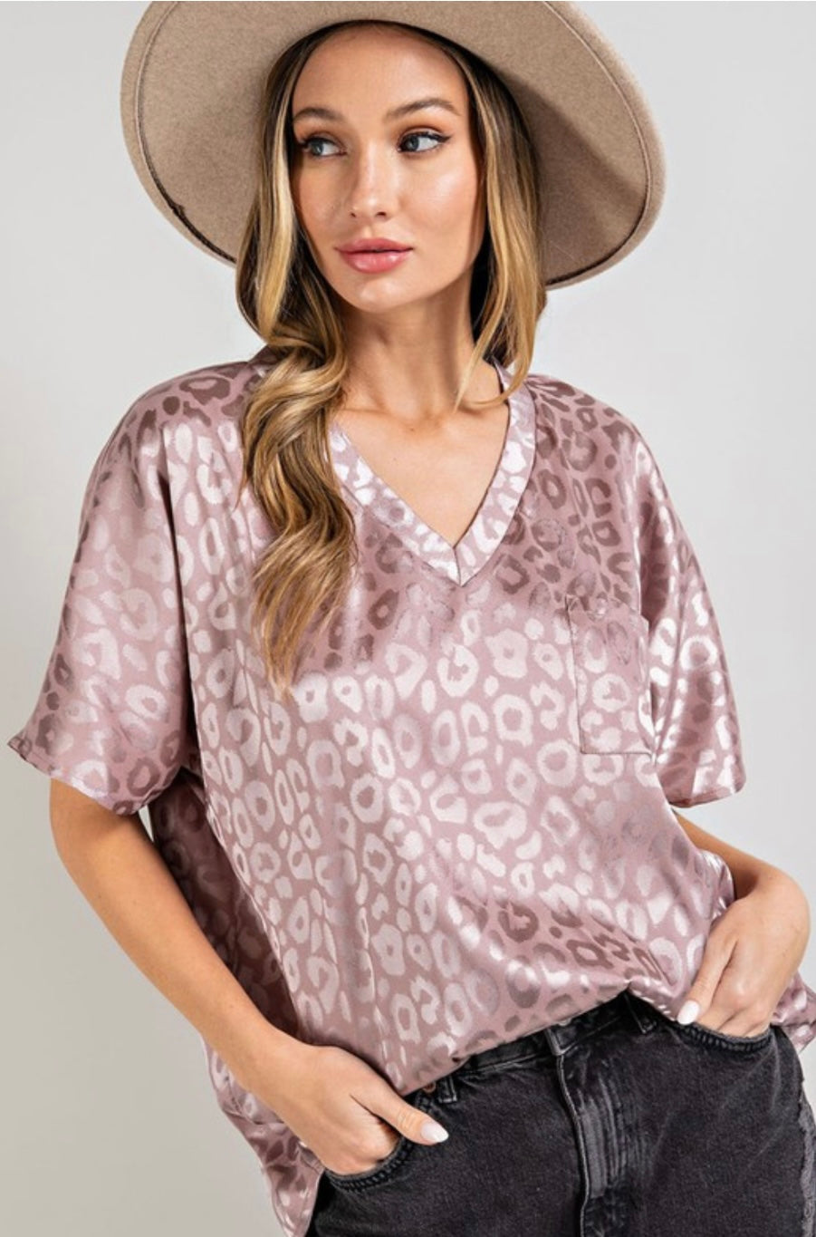 Mauve animal print V-Neck top.