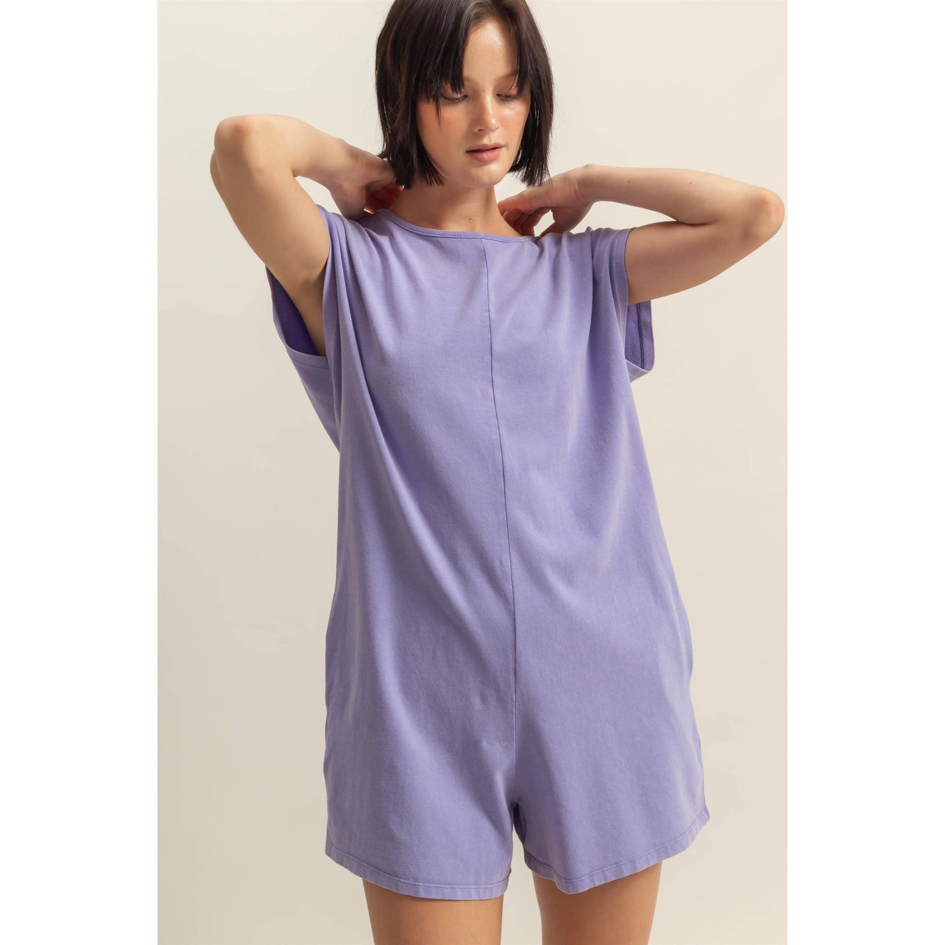 This Romper Is A Summer Wardrobe Staple You Can'T Live Without. Featuring An Overall Relaxed Fit, This Knit Romper Comes With A Crew Neckline And A Sleeveless Cut. The Flowy Fit Ends In Attached Short Legs.