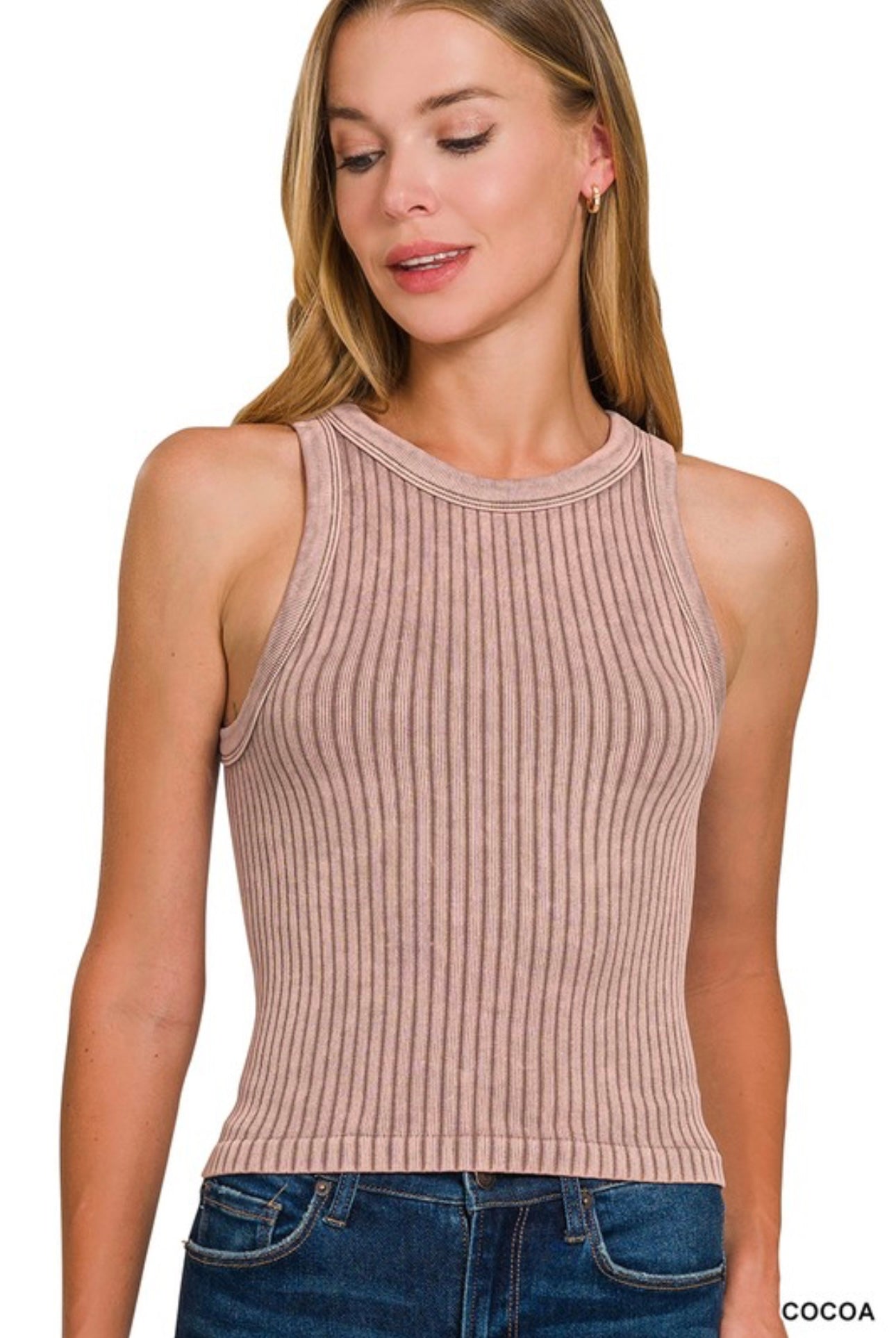 This Ribbed Washed Tank Top offers a laid-back and versatile look with its ribbed mineral washed design. Perfect for dressing up or down, it provides both comfort and style. Elevate your wardrobe with this must-have piece.